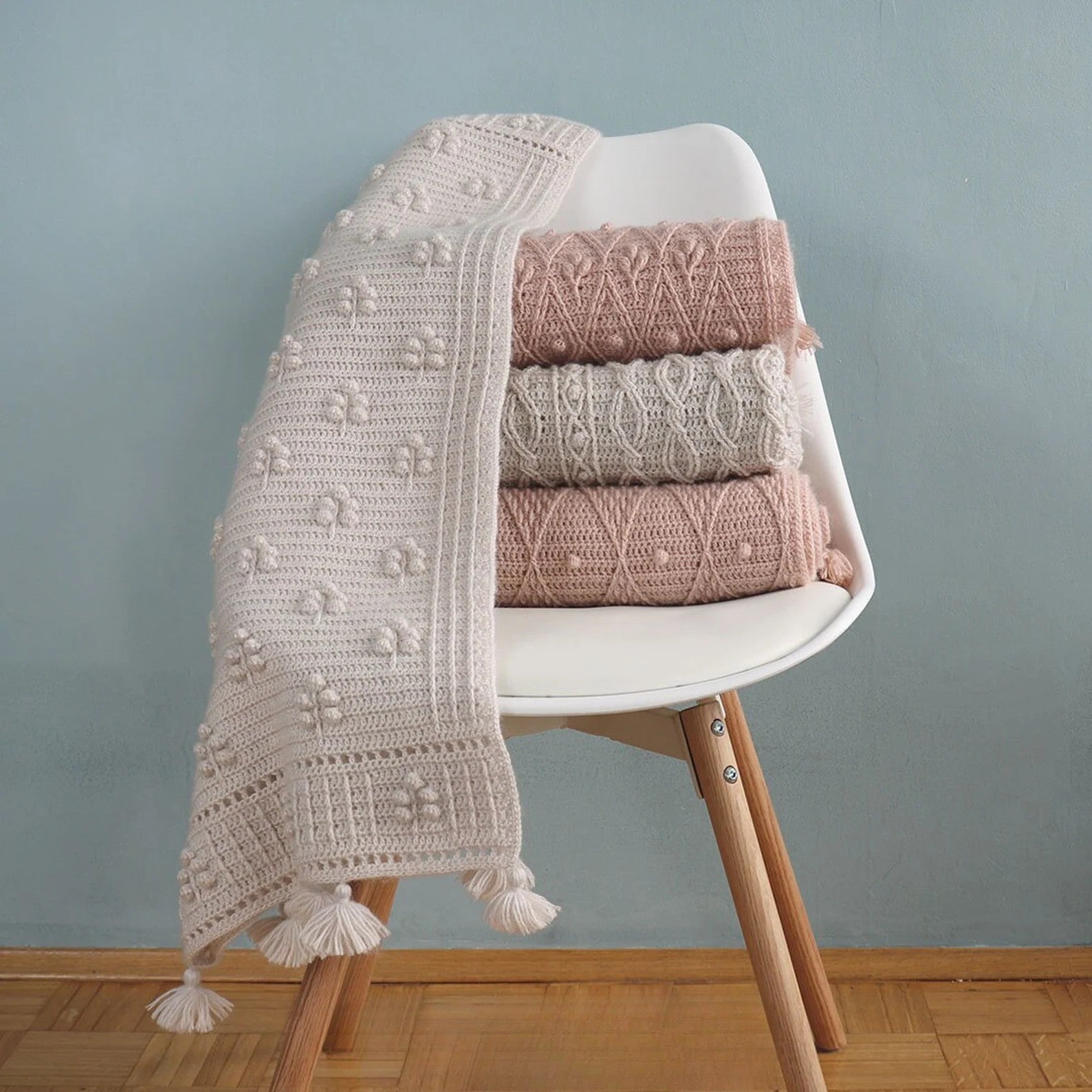 Discover the joy of creating with this exclusive crochet pattern collection — featuring four modern, textured blankets that bring warmth, beauty, and timeless style to your handmade creations.