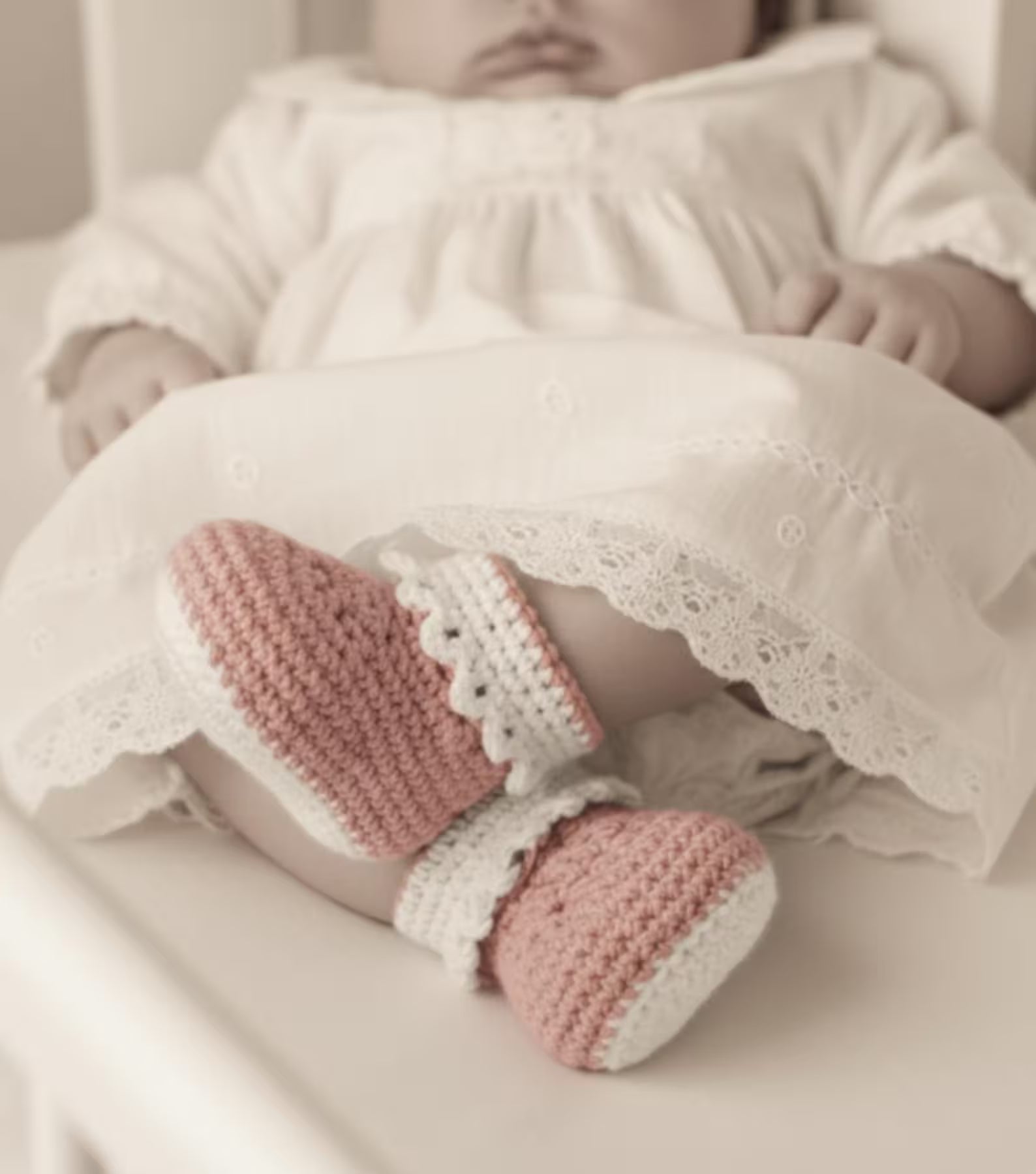 Classic Baby Style with a Handmade Touch: The cuffed ankle design offers extra warmth and a secure fit, while the dainty scallop edging adds just the right amount of decorative flair.