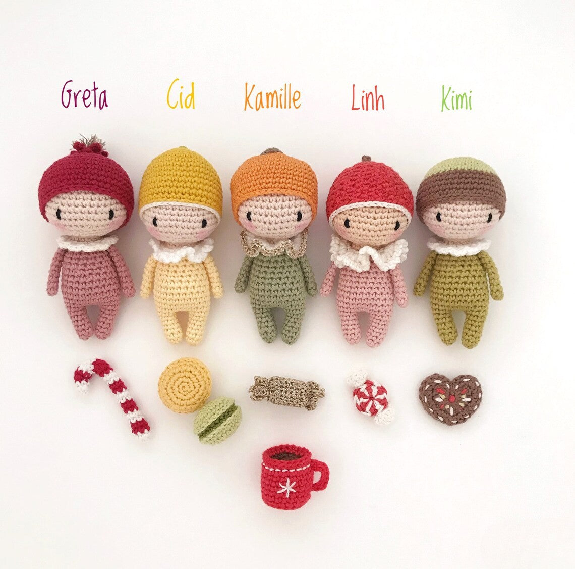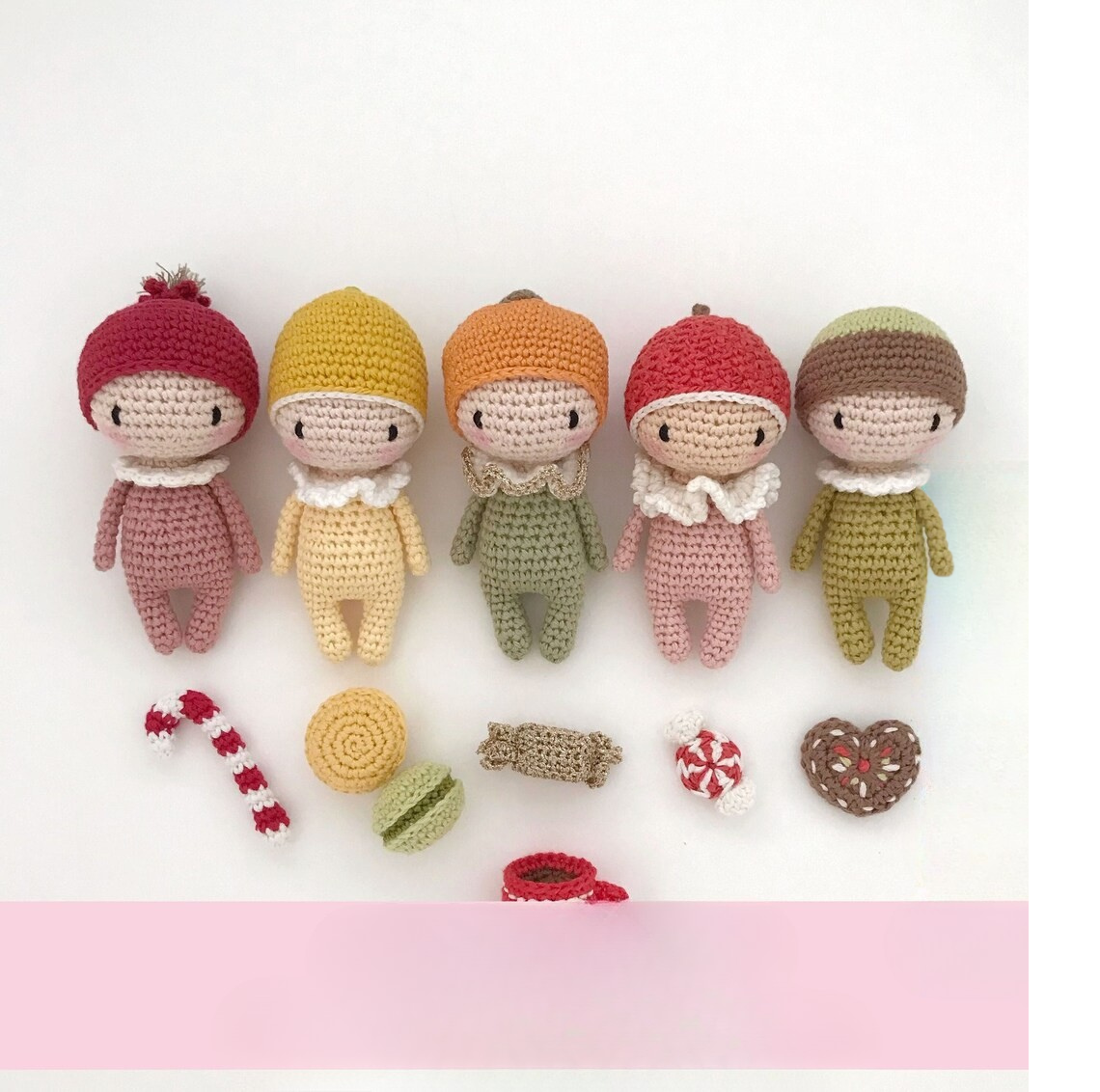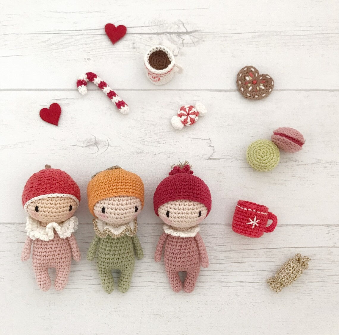🎄 Festive & Fun: Each fruity doll is about 11 cm tall (when made with 2mm crochet), making them a perfect size for tree ornaments, gift toppers, or cuddly holiday keepsakes.