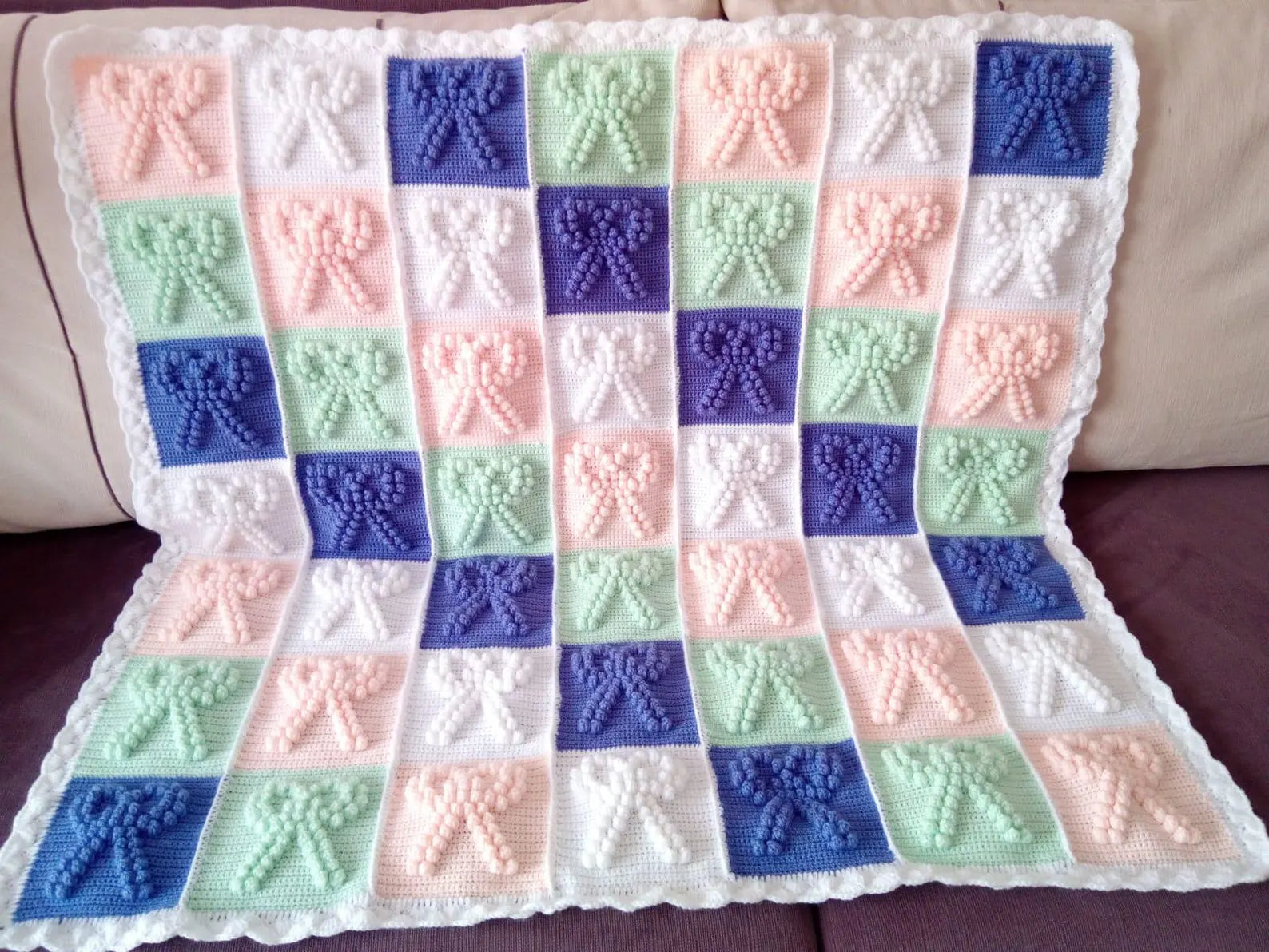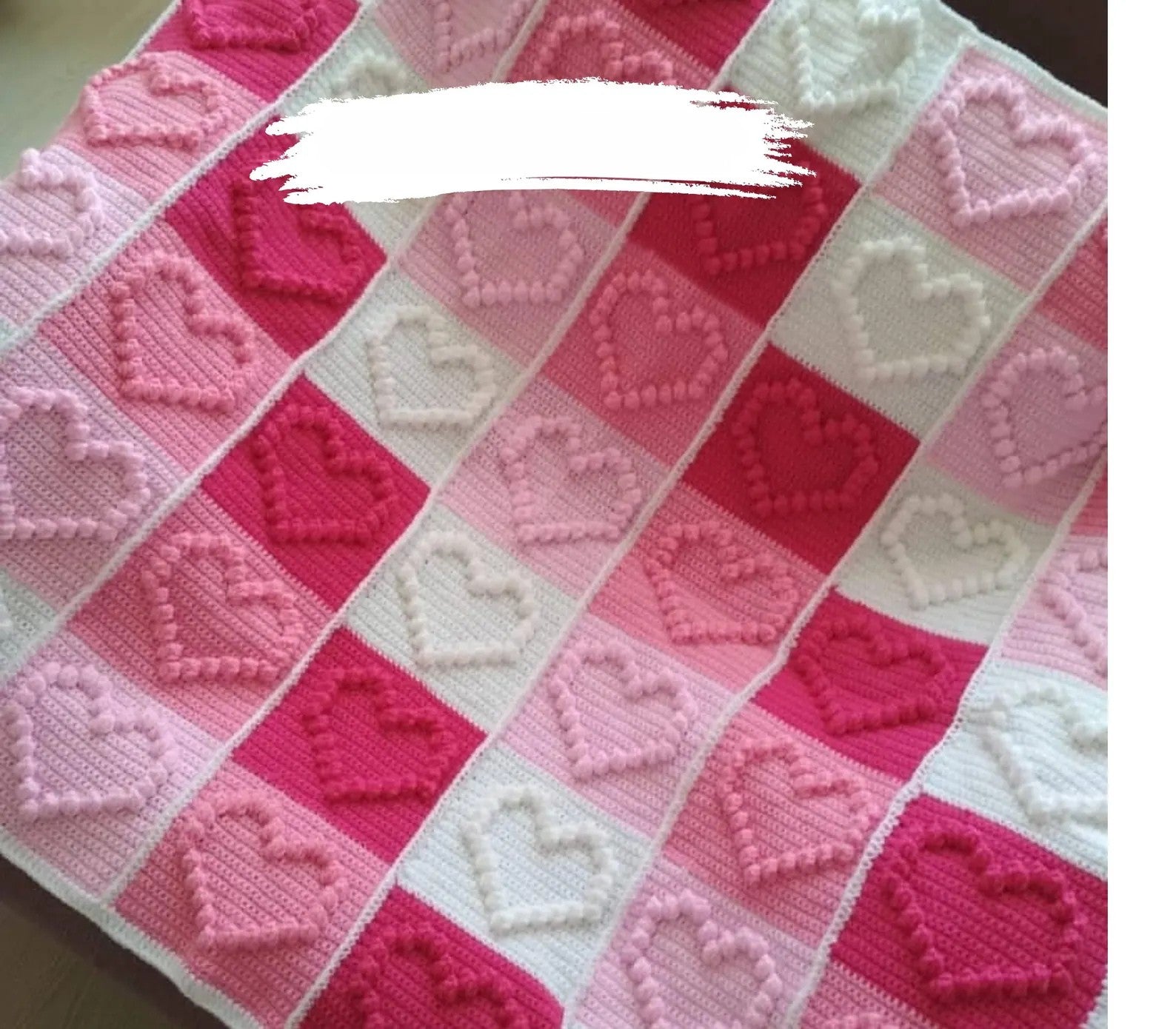 Heart Motifs Puff Stitch Blanket Crochet Pattern