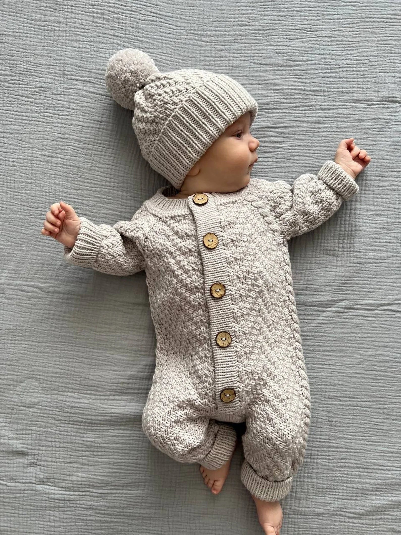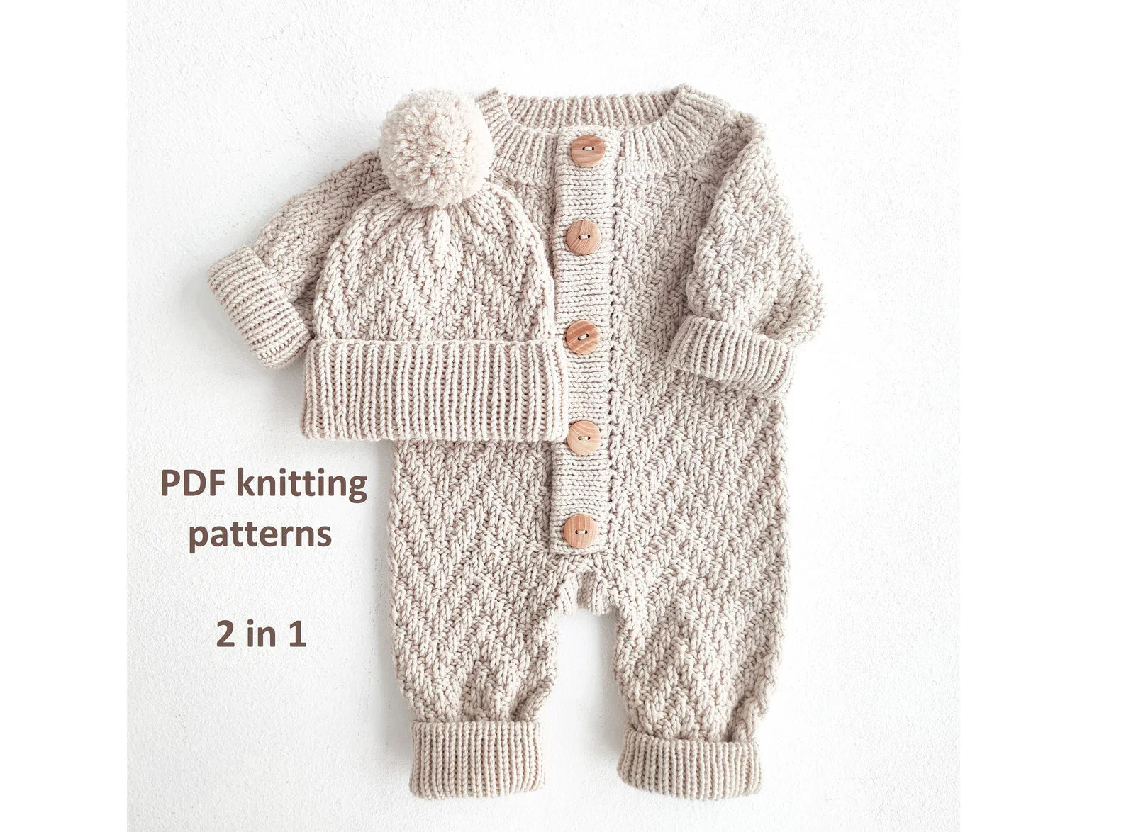 This 2-in-1 Knitting Pattern Set lets you create a cozy romper suit and matching hat — the perfect handmade outfit for your little one!