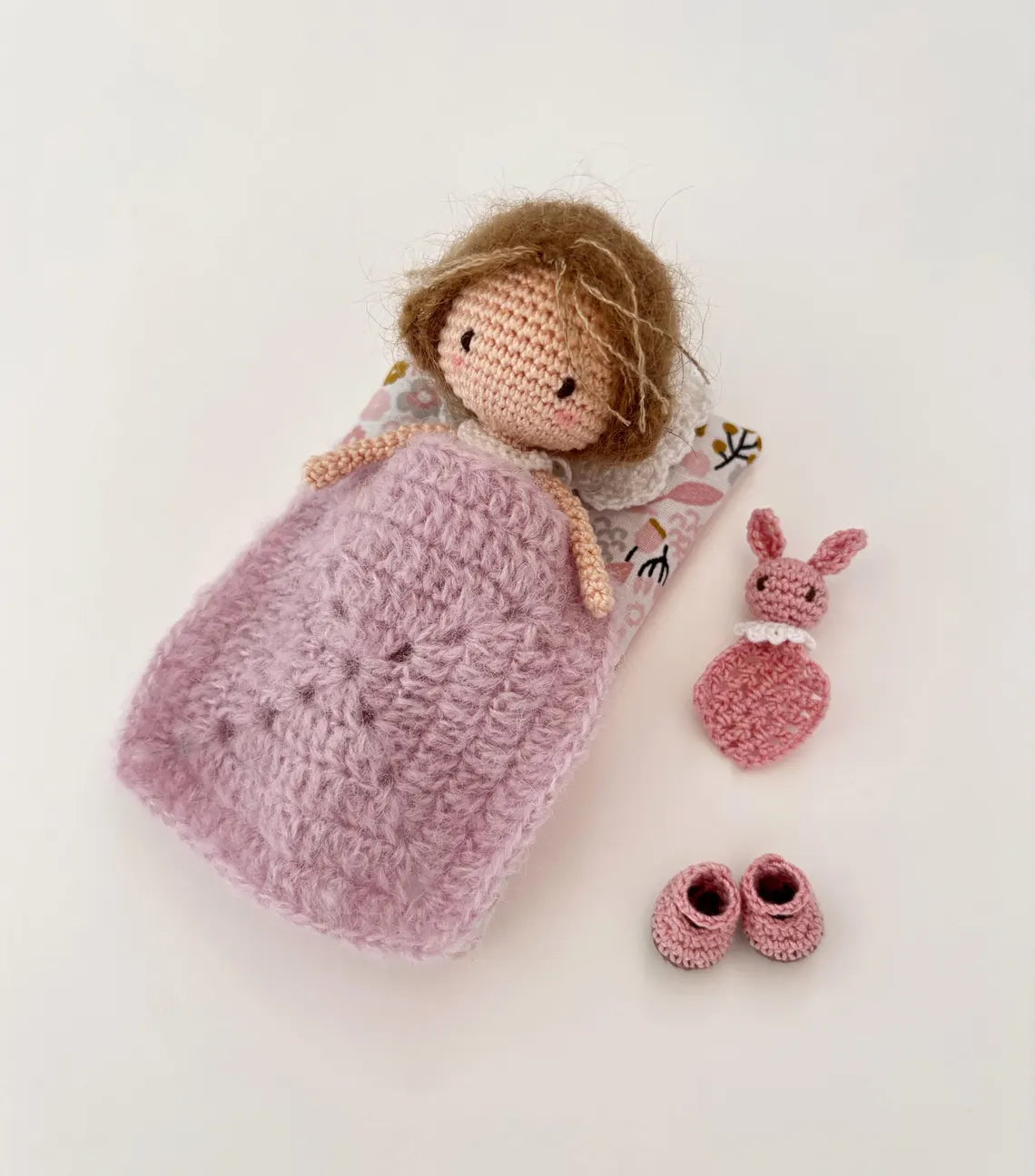 Charming & Detailed: This pattern guides you through creating not just the delicate doll, but her tiny wardrobe, bunny comforter, and cozy bedding. Perfect for thoughtful gifts, storytelling, or collectors of miniature magic. 🧶