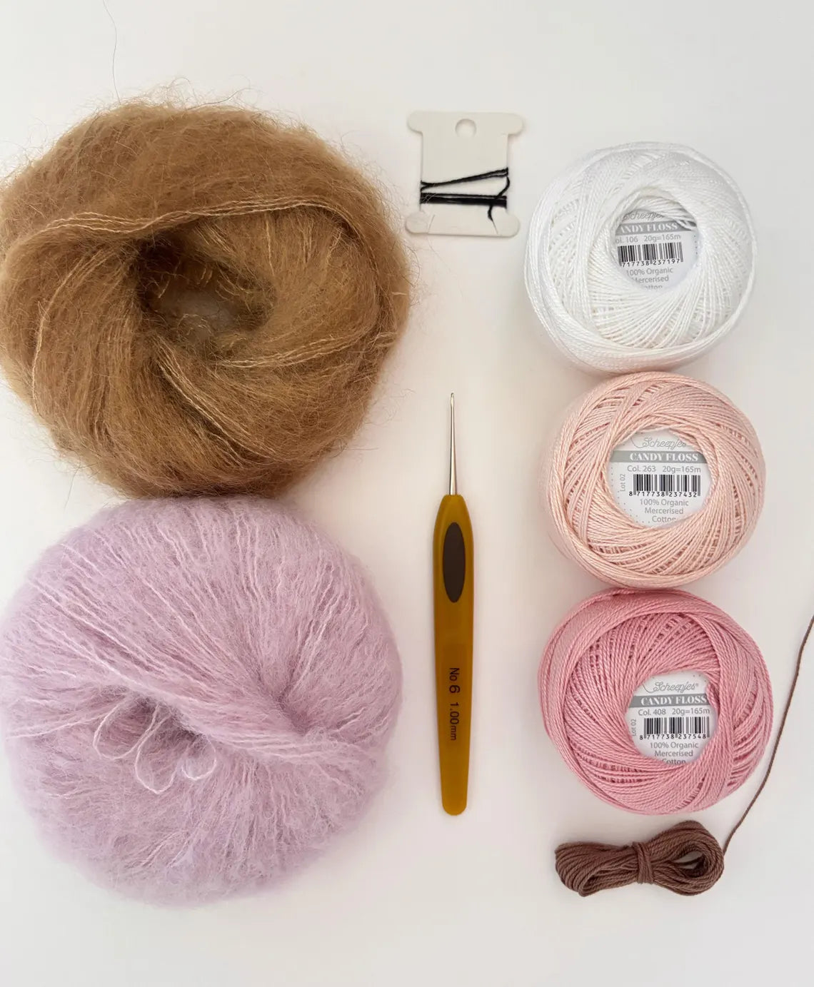 - Scheepjes Maxi Sweet Treat cotton yarn in skin color 263, white 106, pink 408, brown 503