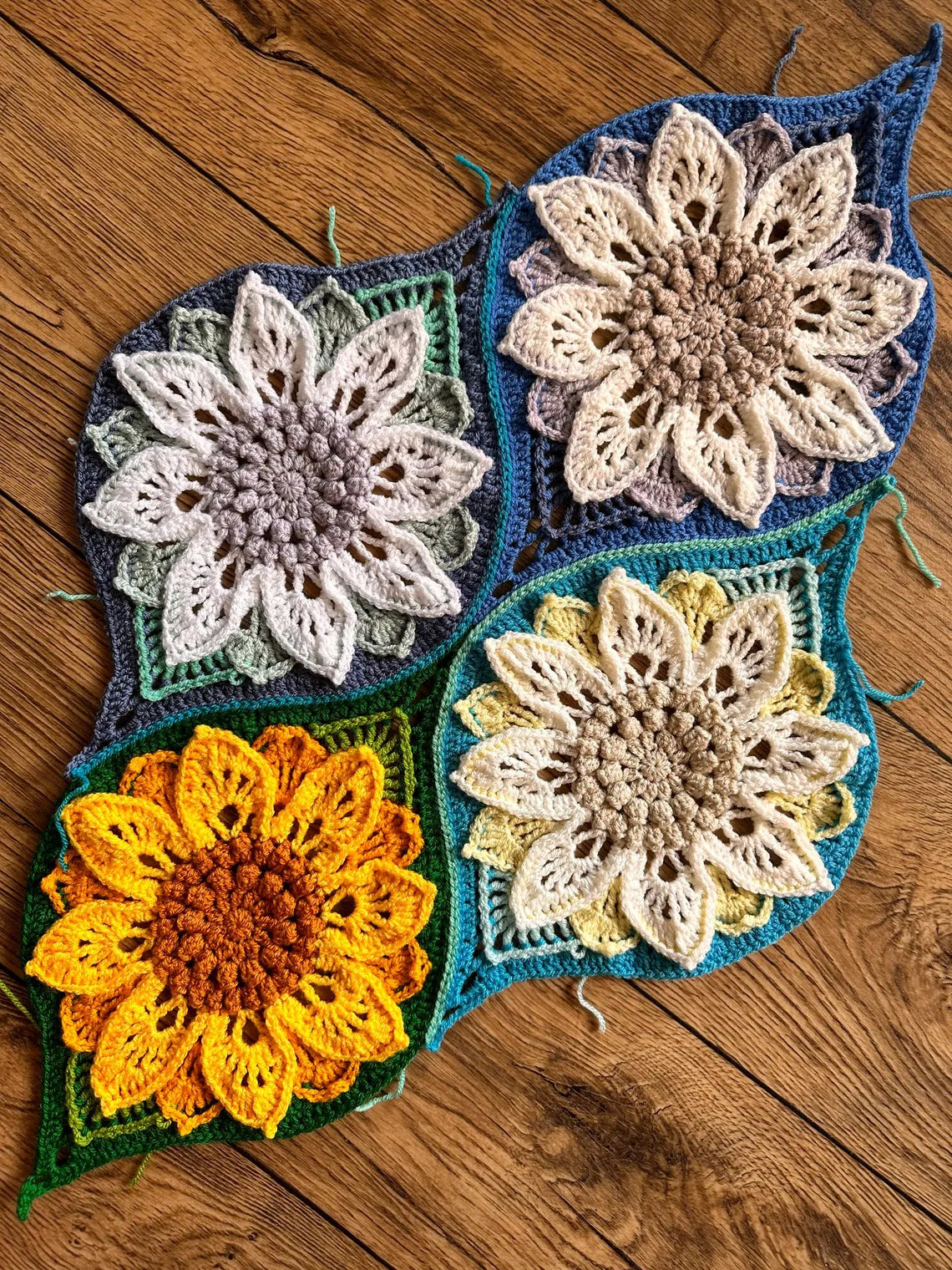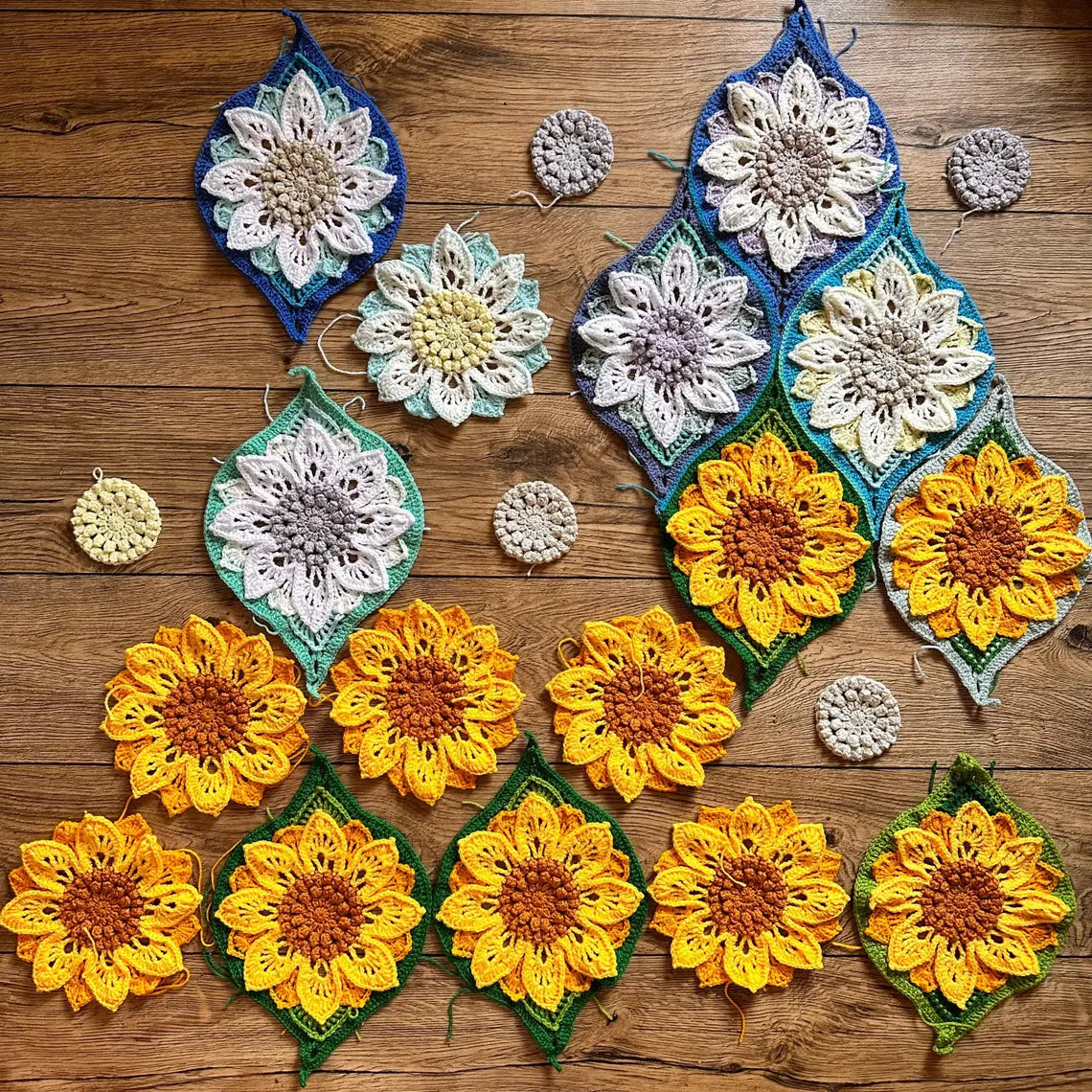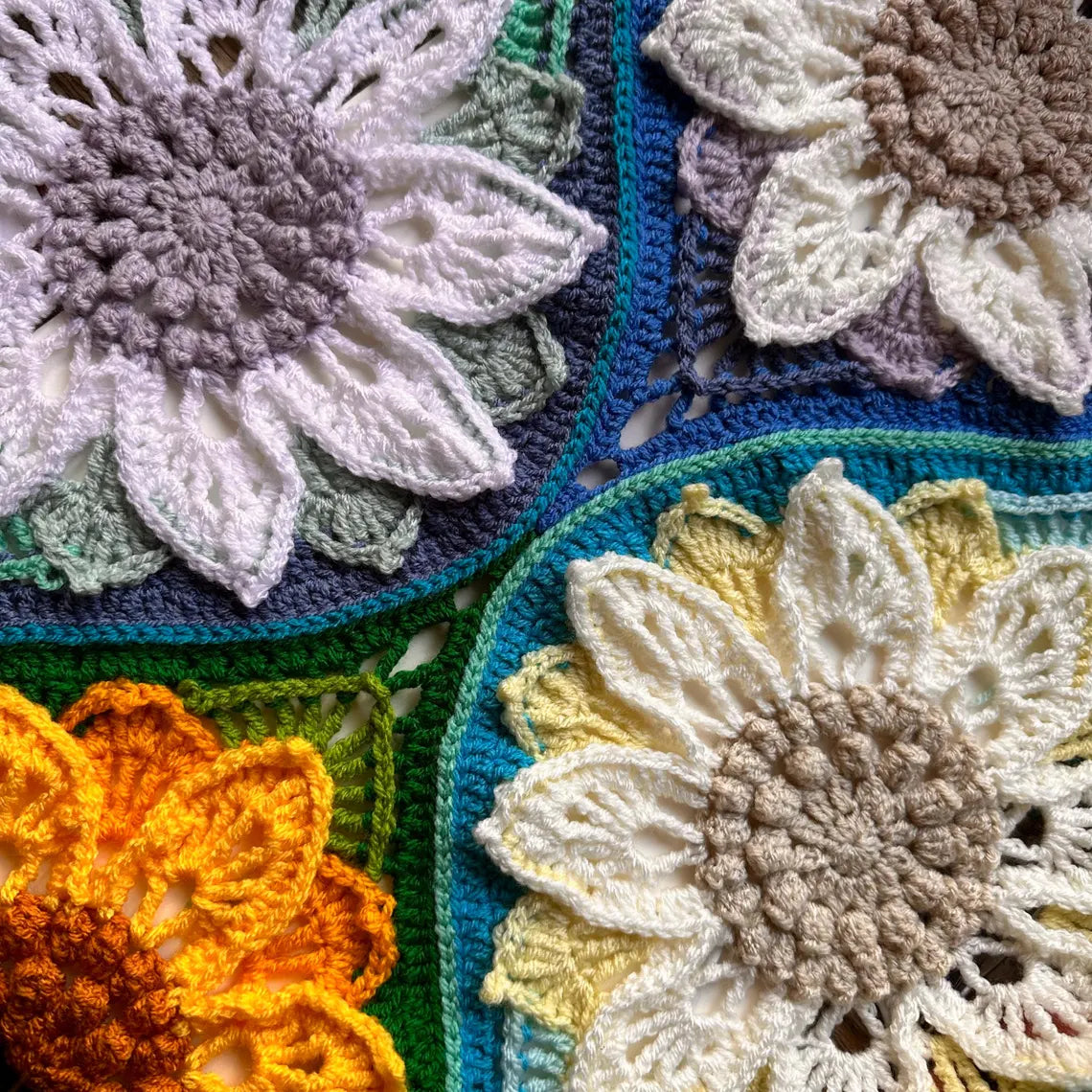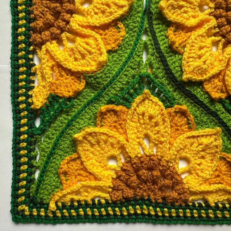 🌻 Why You’ll Love It: With updated instructions including half-sunflowers for smooth edging and a simple, modern moss stitch border, this pattern is as practical as it is beautiful.