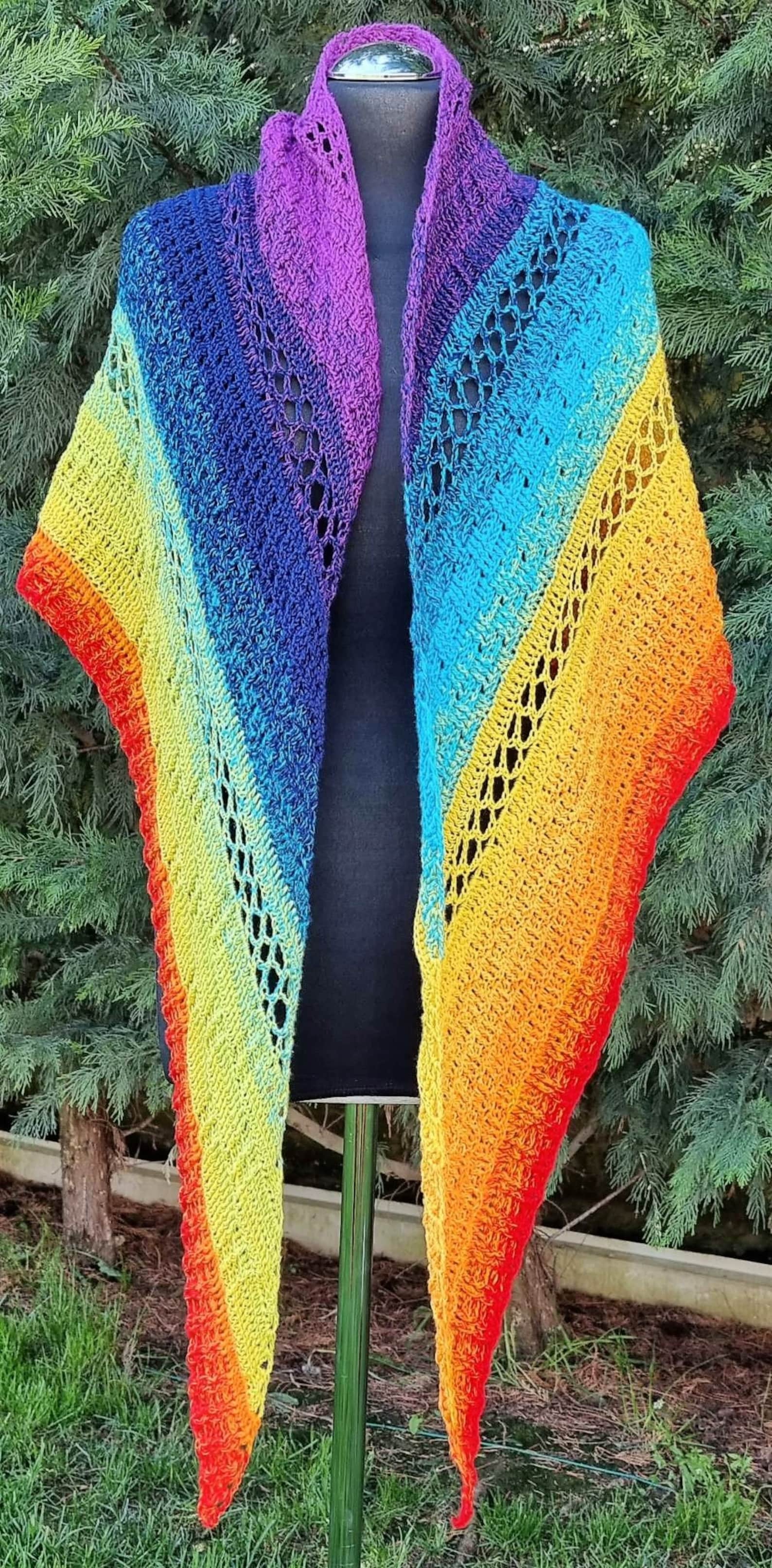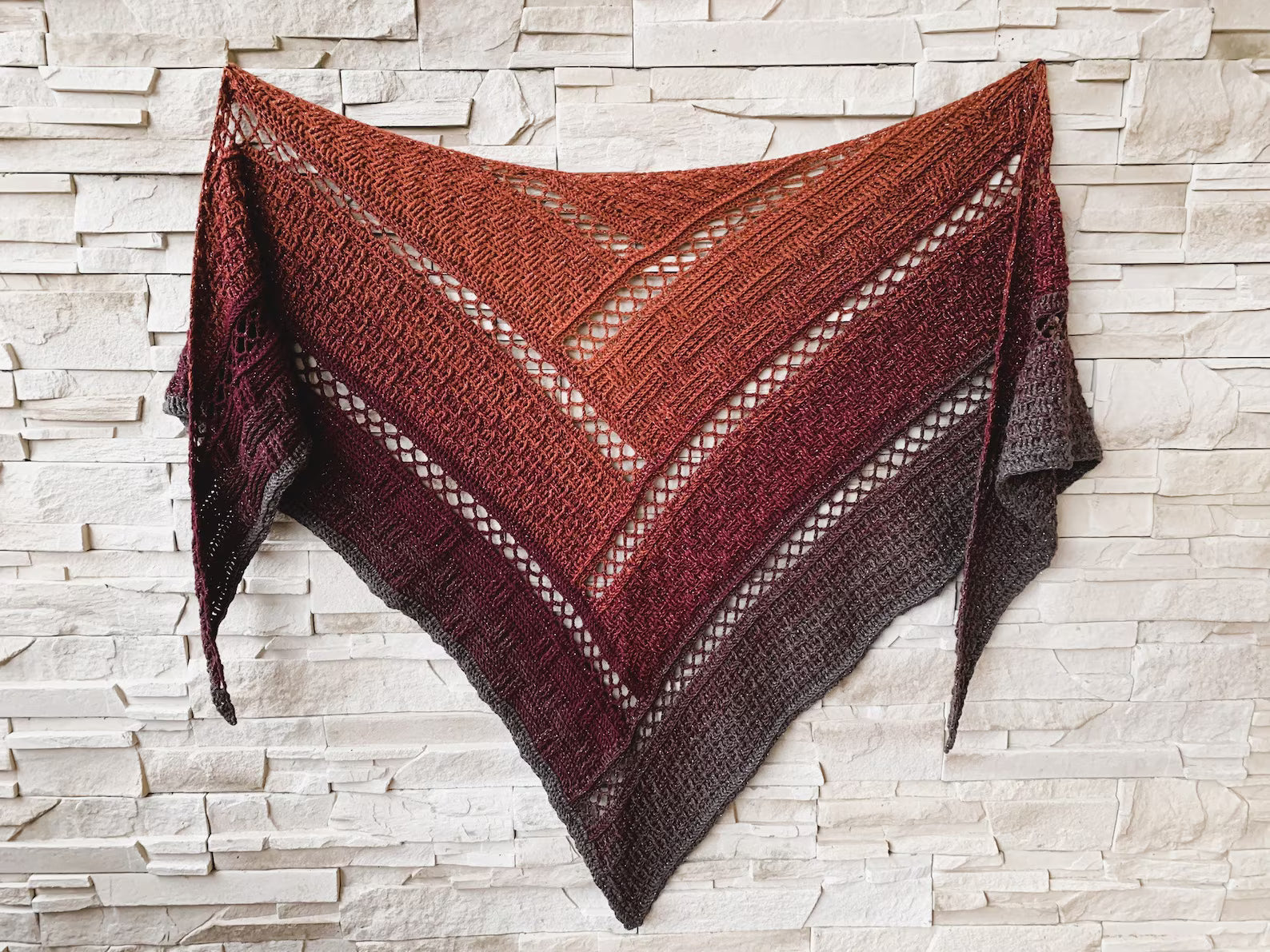 Unlike traditional triangular scarves, this design is crocheted neither symmetrical nor asymmetrical, giving it a truly original shape that makes every stitch feel exciting and fresh.
